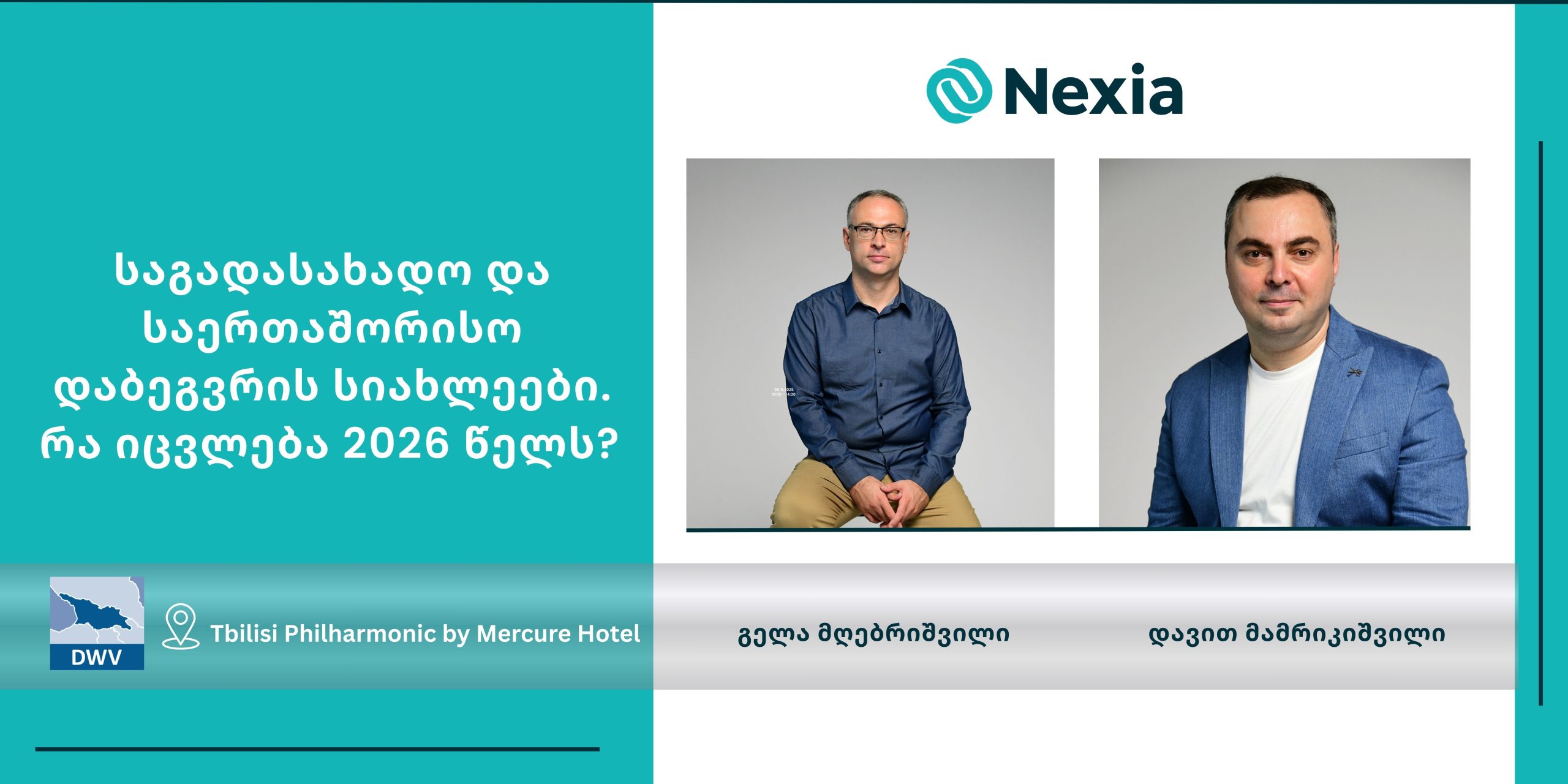 2026 წლის 25 თებერვალს სასტუმრო Tbilisi Philharmonic by Mercure-ში გაიმართა გერმანიის ეკონომიკური გაერთიანებისა (DWV) და ნექსია საქართველოს ერთობლივი სემინარი თემაზე: საგადასახადო და საერთაშორისო დაბეგვრის სიახლეები. რა იცვლება 2026 წელს?